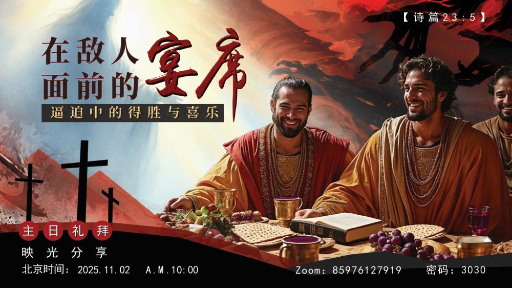 神不是把我们藏在温室里,我们也不是温室的花朵。我们不是只与亲朋好友吃吃喝喝,而是在敌人面前摆设筵席。这不是残忍,而是高升;不是弃绝,而是荣耀。愿我们无论此时身处安稳还是火窑,都抬头望见那位为我们擘饼、举杯的主。祂曾走过比我们所知更长的苦路,祂的伤痕是我们的确据,祂的复活是我们的盼望。耶稣所经历的三年半传道,不就是这样一个过程吗?祂受到的逼迫难道不超过我们所有人吗?那些使徒们所受到的逼迫不也是《圣经》给我们最重要的见证吗?