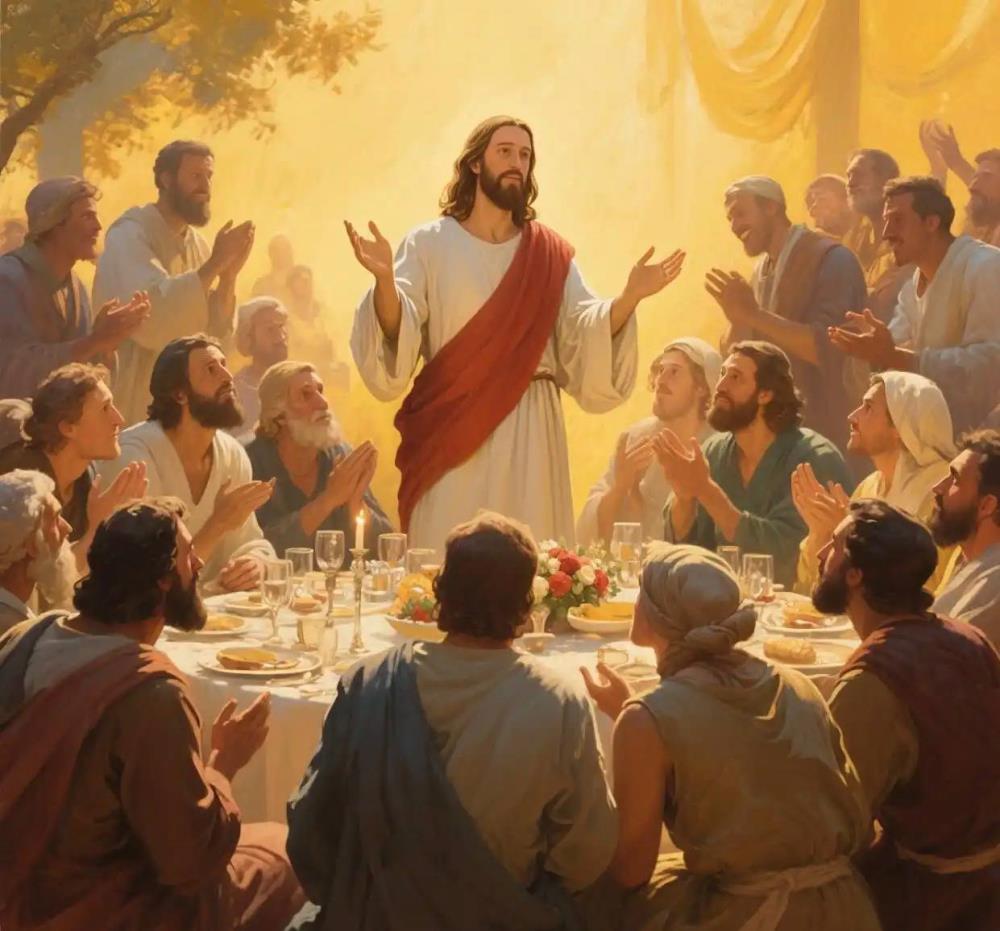 到了新约的时候,我们更能看到这样的一种敌人面前的筵席:耶稣带领的往往是一些税吏和罪人,法利赛人、祭司这些律法主义者经常指责耶稣的门徒是不守律法、不洁净的人。但是在这些宗教“敌人”面前,耶稣与罪人们同席,这是“冒犯性”的筵席——他们看见神竟与“不洁净”者同欢,这是对天国得胜的预演。耶稣说:“我来本不是召义人,乃是召罪人。”我们知道世上本没有一个义人,更别提这些假冒为善的律法主义者了,他们其实并不是义人。