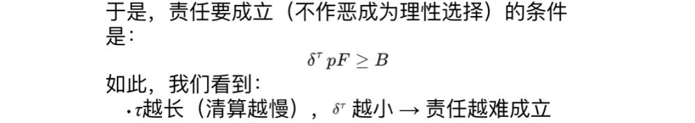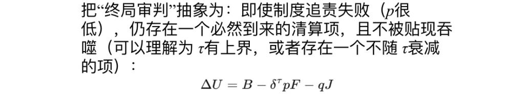 核心:没有终局审判=贴现率趋近无穷大=责任变成不值得。