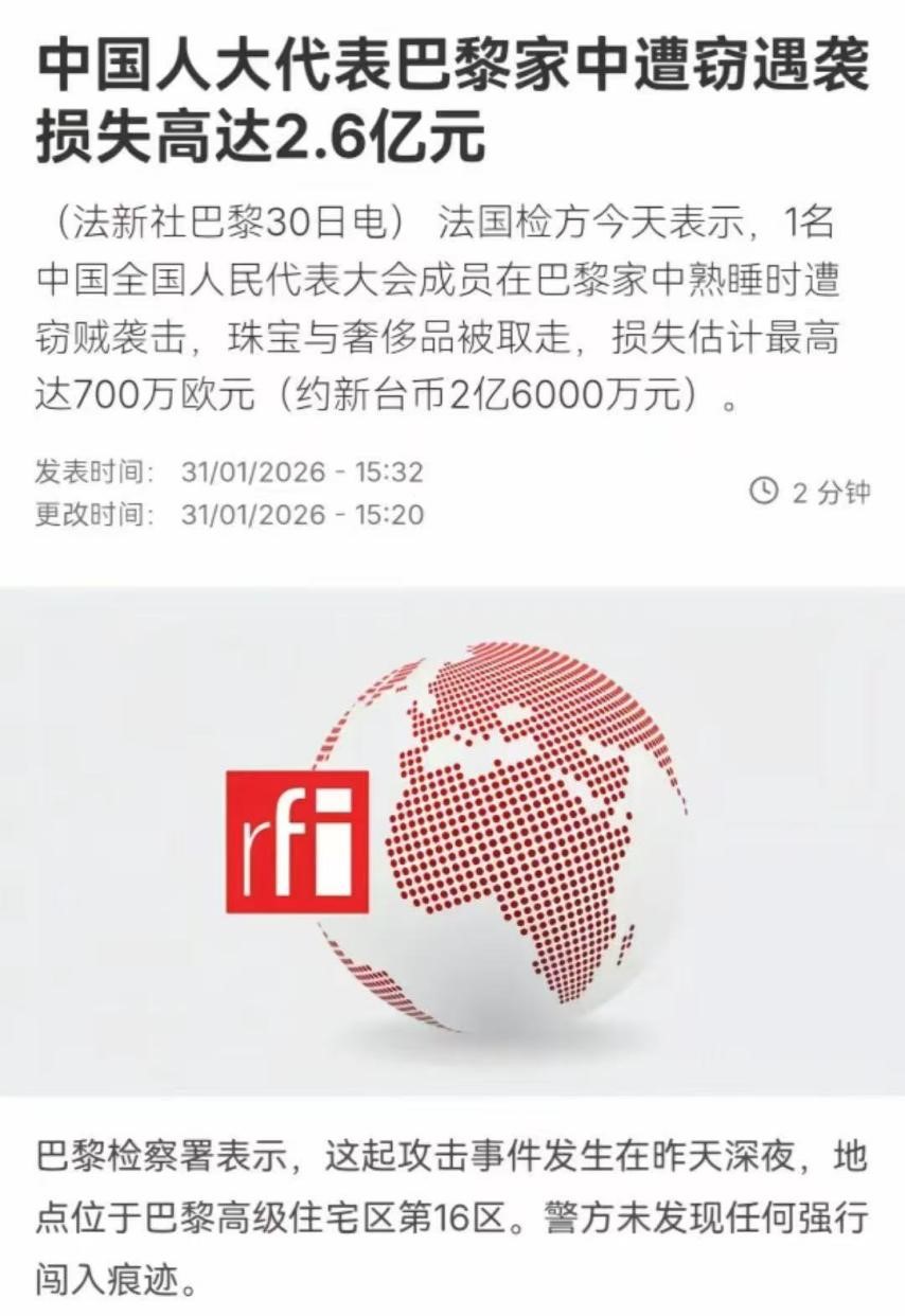 最近看到一则颇具黑色幽默意味的新闻。巴黎发生一起高额盗窃案,一名中国官员在当地的住宅遭窃,损失巨大。