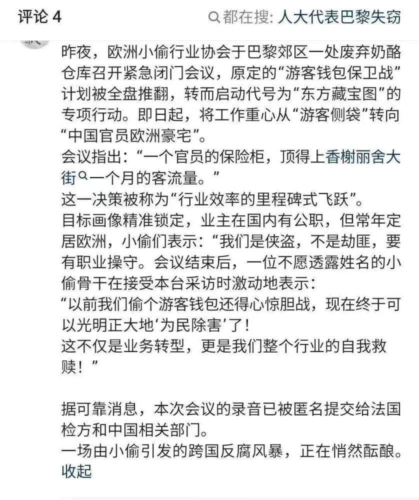 更耐人寻味的,并不是案件本身,而是网络上流传的:欧洲小偷行业协会紧急开会,宣布战略转型:不再偷游客钱包,而是“精准打击中国官员欧洲豪宅”,并自我标榜为“为民除害”“侠盗行为”。