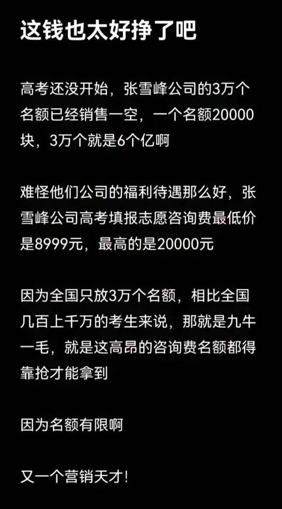 如果从经济学分析,必须先承认:张雪峰的存在,是合理的。甚至可以说,是“必然的”。