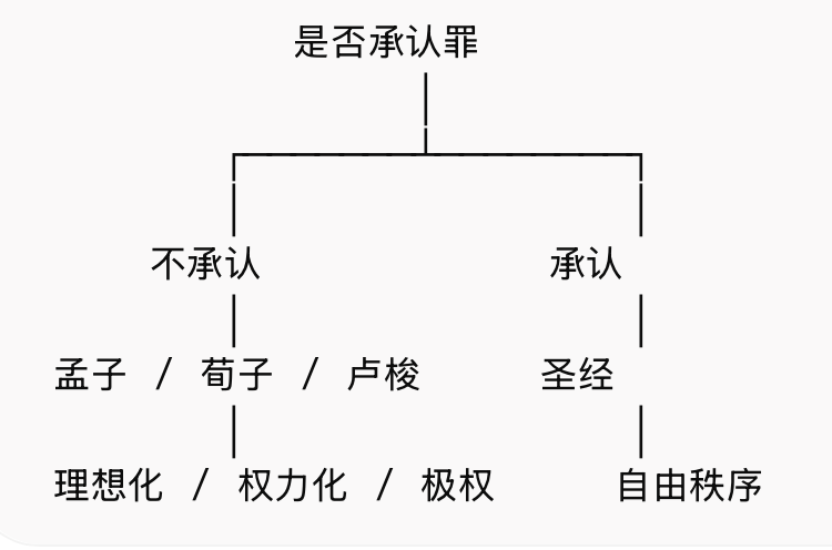 综上所述,人类文明的分叉,不在于制度设计的差异,而在于对人性的判断。当人把恶归咎于外部,就会不断改造世界;当人承认罪在自己里面,才会同时约束自己与权力。